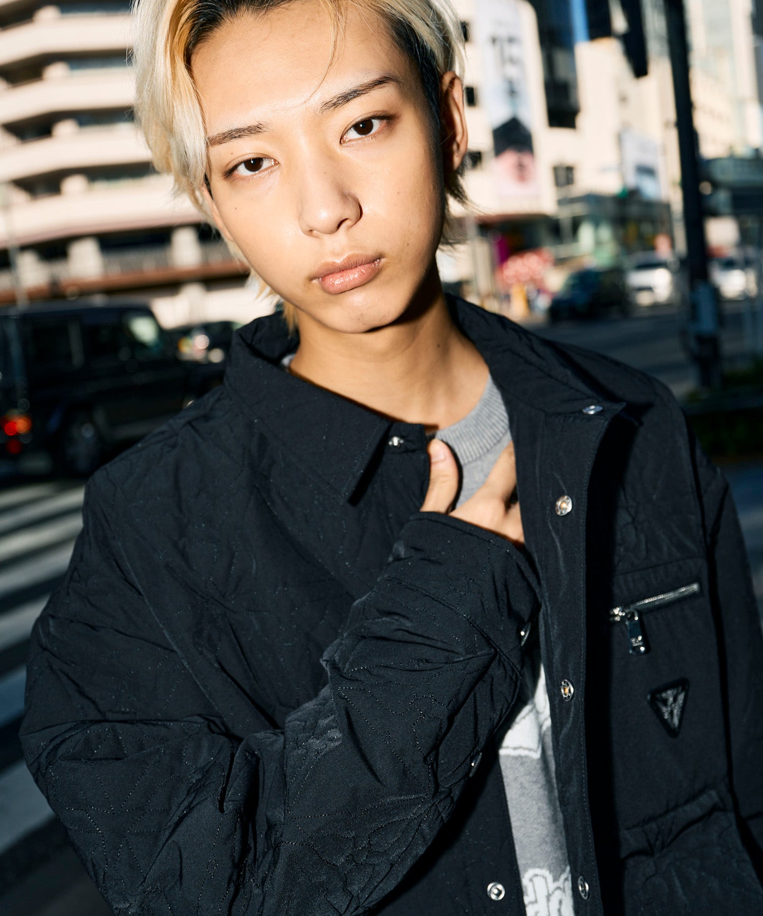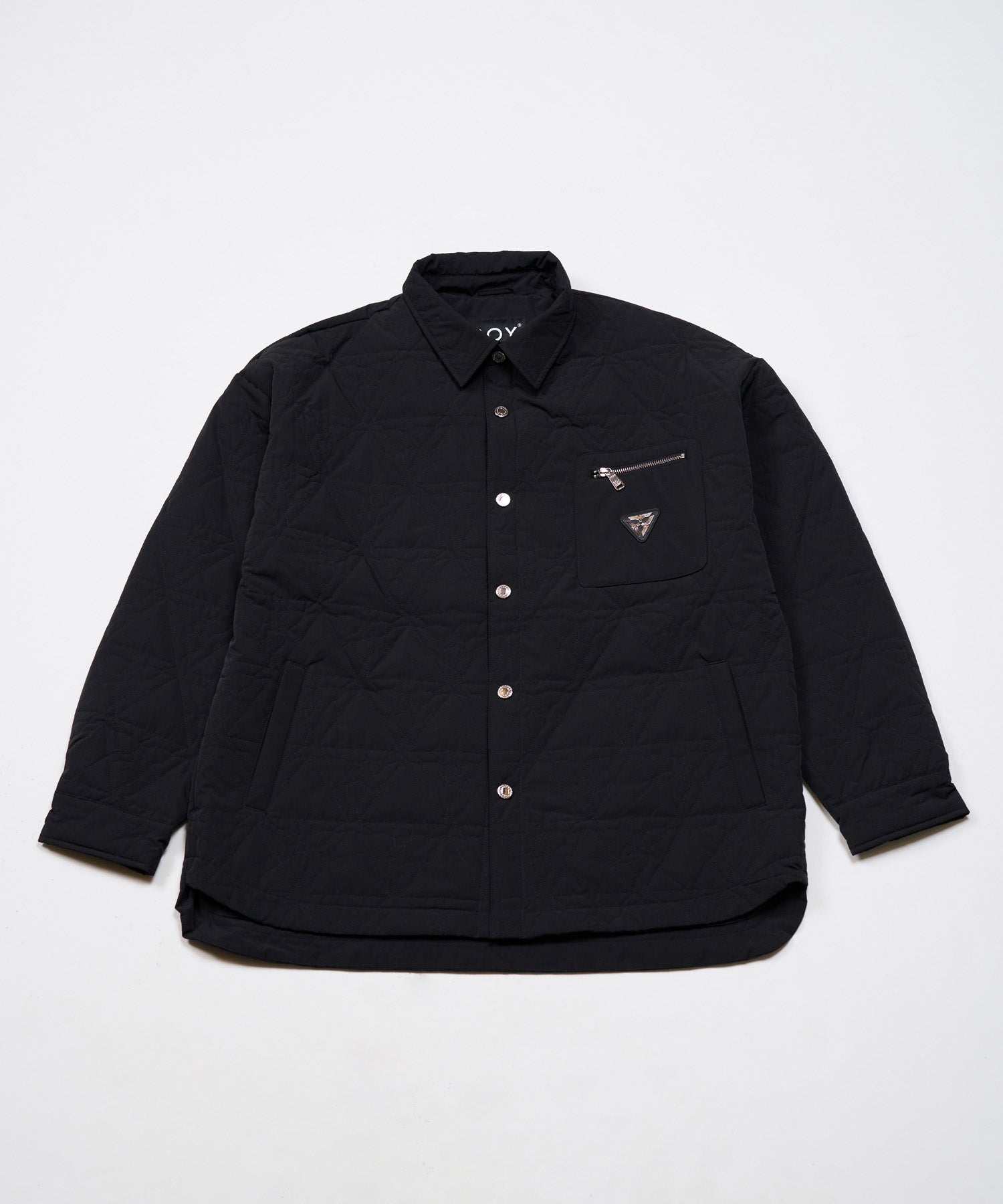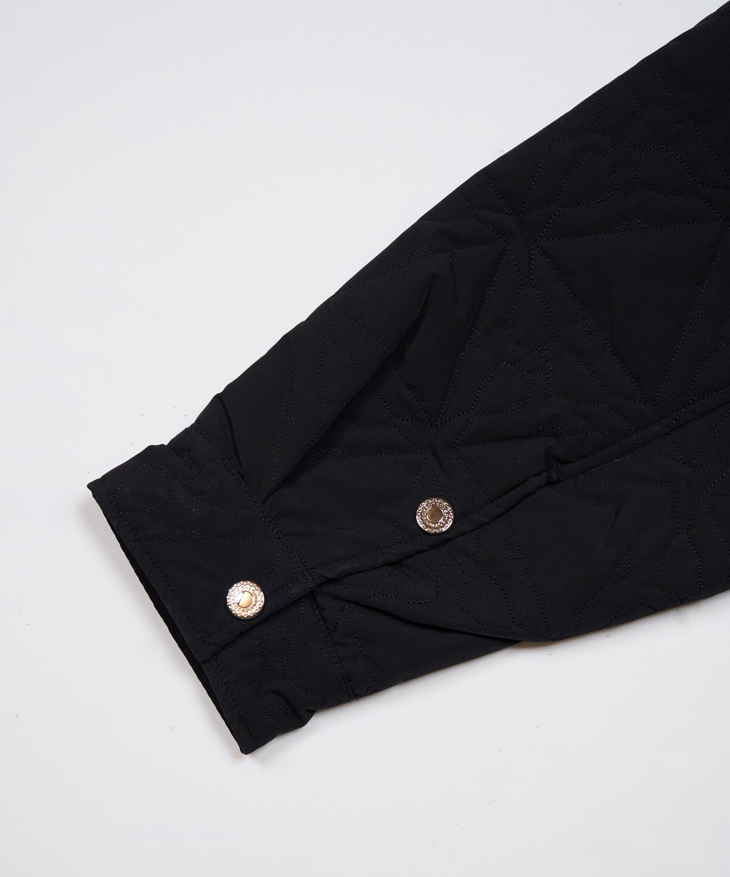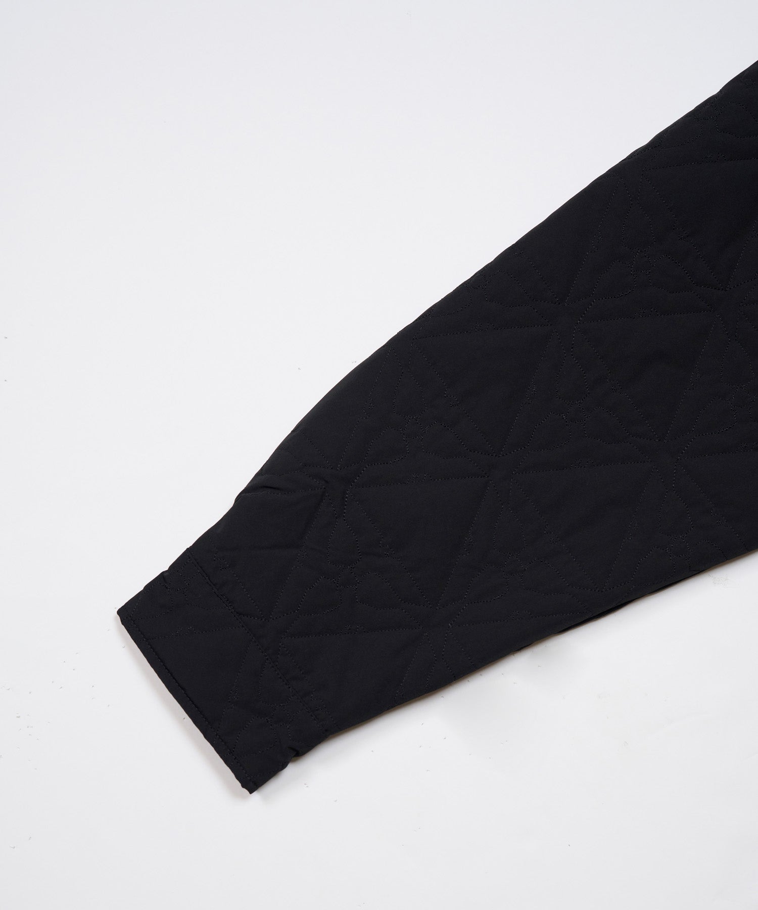 ブランドアイコンのイーグルがキルティングで縁取られたワザありなジャケット。ボタンやファスナーはシルバーカラーでブラックボディとのコントラストを出しています。