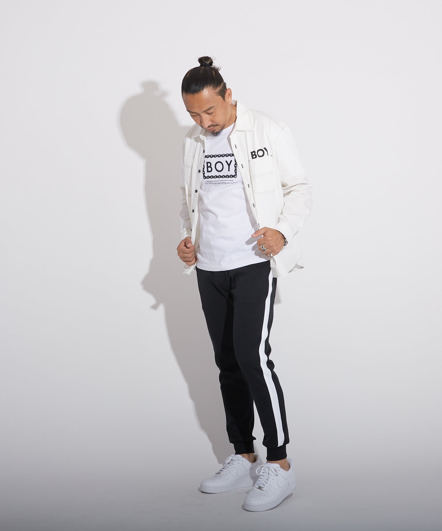 さらに胸元にBOYの文字と裾のマチ部分にはイーグルのプリント、バックの襟元のDカンなど、細部にまで遊び心を加えました。