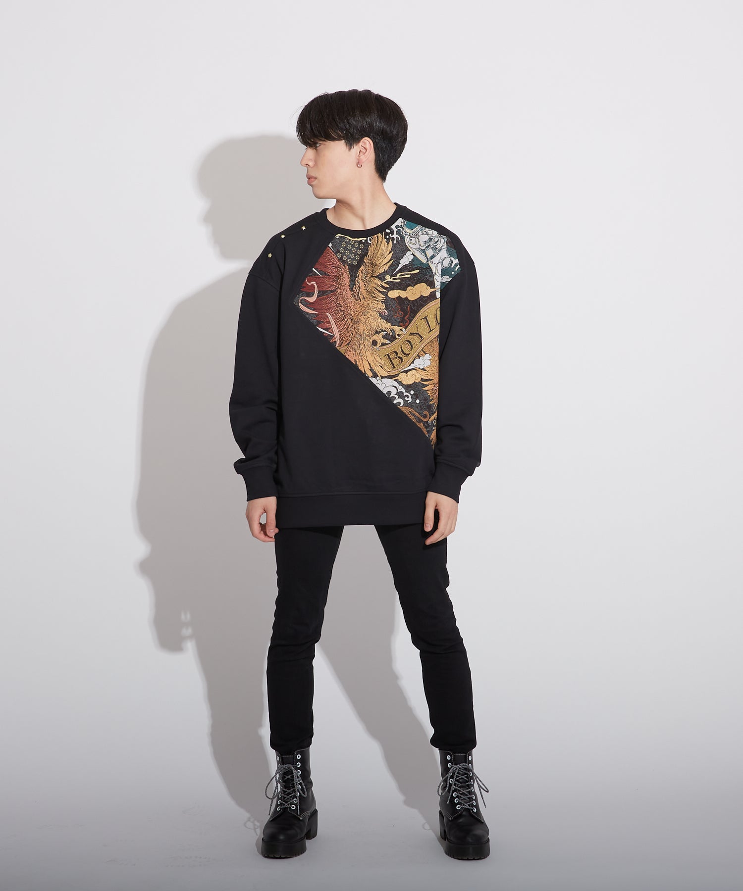 フロントはオリジナルのジャガード生地を切り替え、右肩にイーグルモチーフのスタッズをあしらいました。