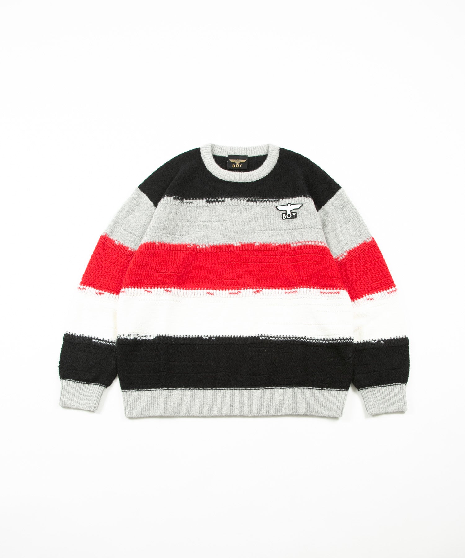 BORDER CREW NECK KNIT MULTI【B231N6000102】